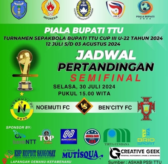 Berikut jadwal pertandingan semifinal Piala Bupati TTU Cup III Tahun 2024 :