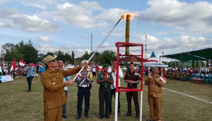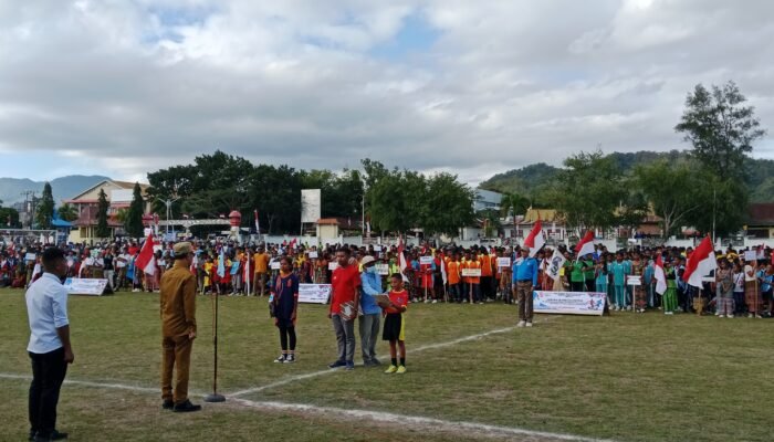 Kegiatan Popda III tingkat Kabupaten TTU, Provinsi NTT yang diselenggarakan dalam rangka memeriahkan HUT ke-79 Kemerdekaan RI tahun 2024 juga disatukan dengan kegiatan Launching 10 Juta Bendera Merah Putih.