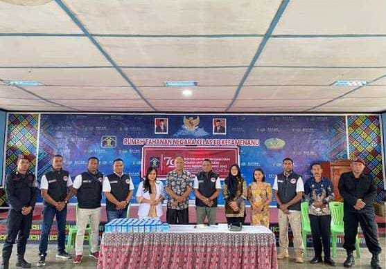 Pose bersama saat kegiatan Bakti Sosial Pemeriksaan Kesehatan bagi Pegawai dan Warga Binaan Pemasyarakatan (WBP) di Rutan Kefamenanu, Kamis (25/7/2024). (Foto: Jho Aban)