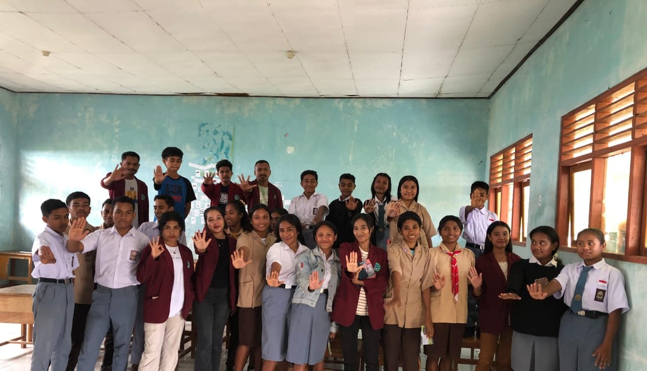 Mahasiswa KKN STIH CW Kefamenanu pose bersama siswa SMK Nibaaf, Kecamatan Noemuti, Kabupaten TTU, Kamis (25)07/2024). Foto: Jho Aban)