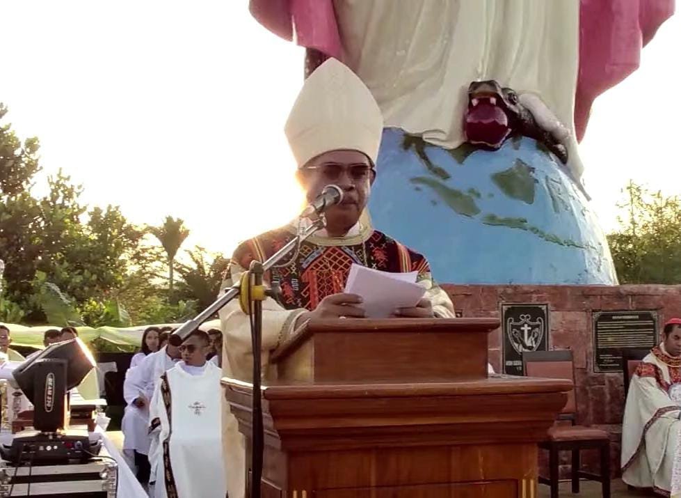 Uskup Keuskupan Agung Kupang, Mgr. Hironimus Pakaenoni, Pr saat memberikan sambutan di Taman Doa Sta. Maria Imaculata Paroki Sto. Antonius Padua Sasi, Kefamenanu, Kabupaten TTU, Jumat (14/6/2024).