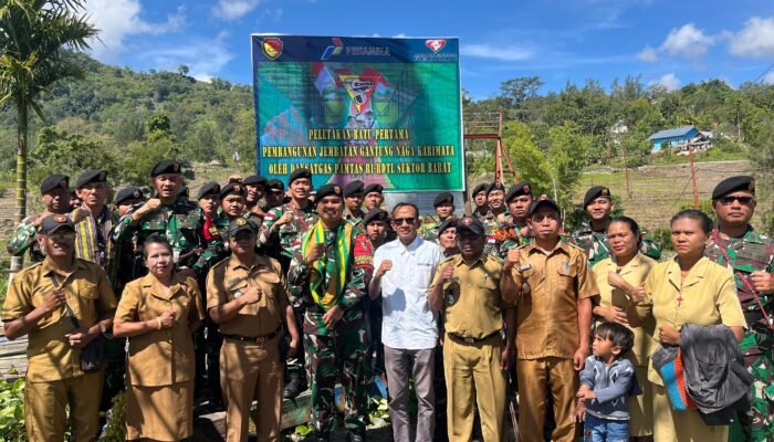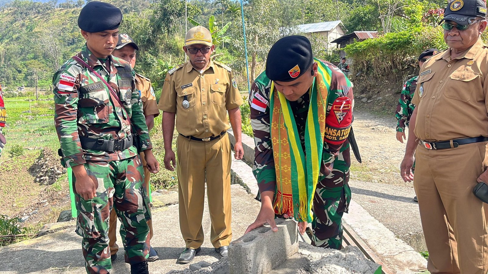 Kefamenanu, BN – Satuan Tugas (Satgas) Pengamanan Perbatasan (Pamtas) RI-RDTL Sektor Barat Yonkav 6/Naga Karimata melaksanakan acara peletakan batu pertama secara simbolis pembangunan kembali jembatan gantung di Desa Noepesu, Kecamatan Miomaffo Barat, Kabupaten TTU, Provinsi NTT, Senin (15/7/2024).