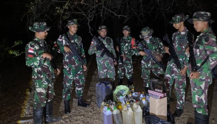 Kefamenanu, BN – Dalam aksi operasi ambush yang digelar Satgas Pengamanan Perbatasan (Pamtas) RI-Timor Leste Sektor Barat, Yonarhanud 15/DBY berhasil mengamankan puluhan liter minyak tanah dan solar.